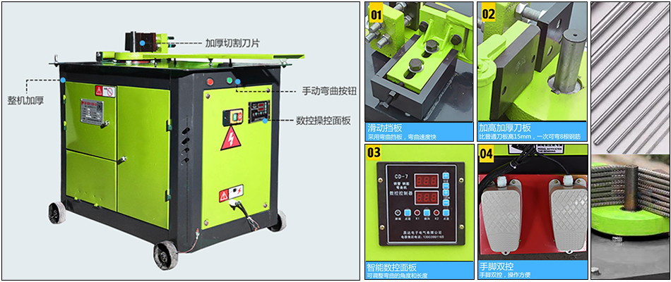 由進(jìn)口伺服電機驅動(dòng),彎曲臂可高速旋轉和伸縮,剪切機構高速完成剪切動(dòng)作,確保鋼筋彎曲精度。